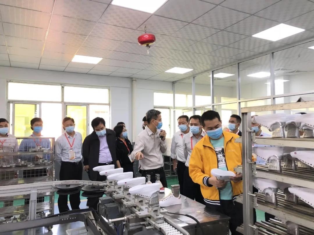 兩批次,近百人,華寶科技全員熱心接待。公司主要負責人帶領專題班學員深入制鞋智能應用車間現場,實地了解制鞋智能產線。
