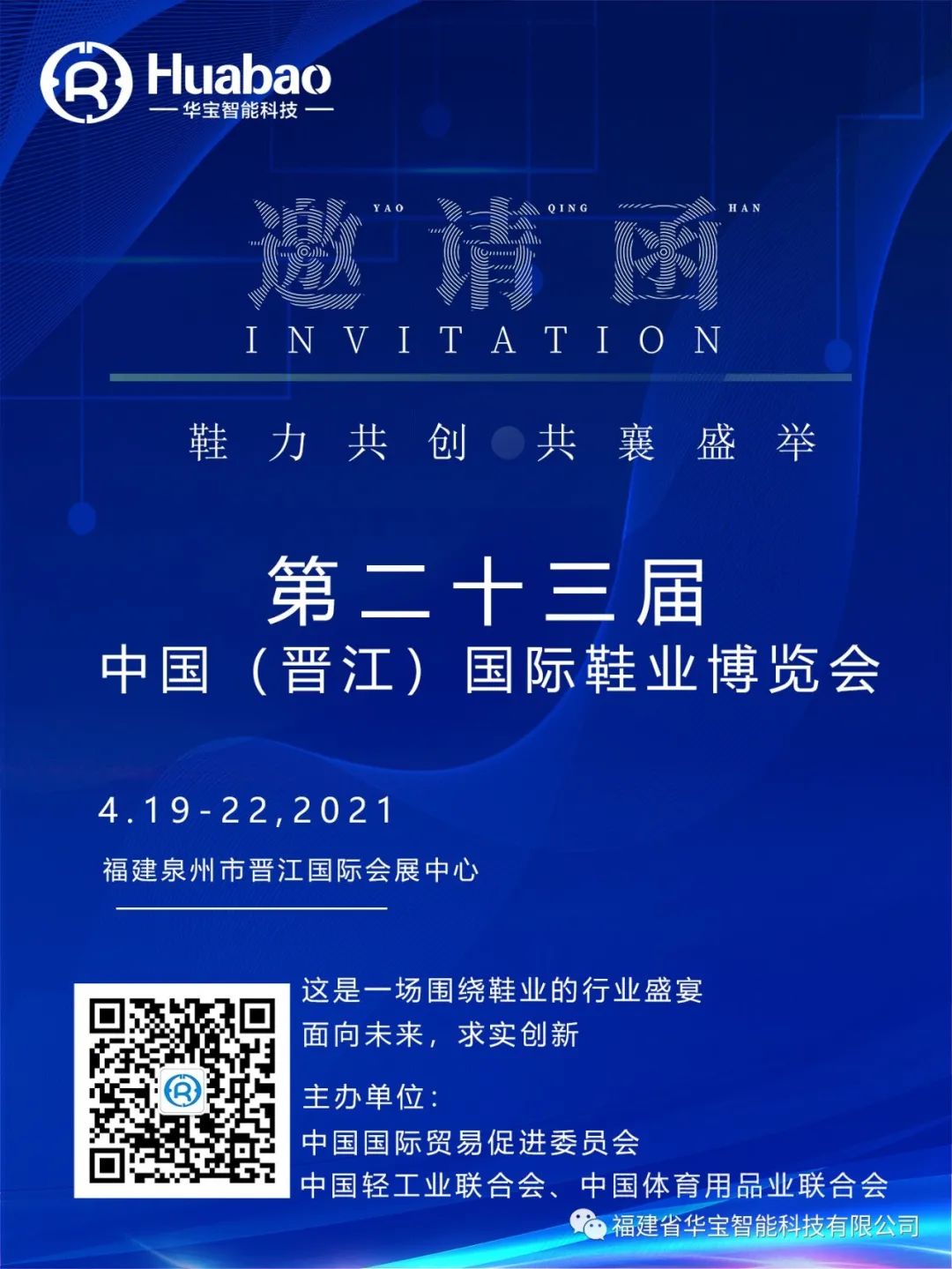 福建省華寶智能科技有限公司將于4月19日-22日參加2021年第二十三屆中國(晉江)國際鞋業博覽會,屆時誠邀您的蒞臨參觀指導!