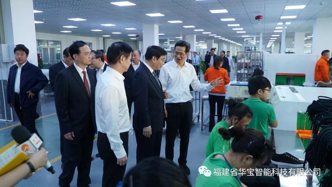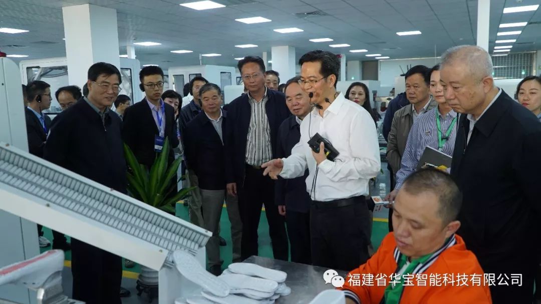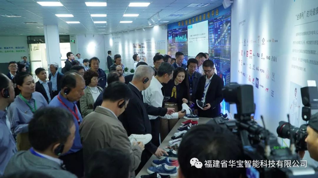 同日,工業和信息化部部長苗圩、 國家制造強國建設戰略咨詢委主任周濟、 福建省人民政府副省長林寶金,全國各地工業和信息化主管部門代表,智能制造試點示范企業、相關制造業企業、智能制造解決方案商、工業互聯網企業等代表,中國工程院等有關科研機構、高校專家等百余人來到  華寶智能科技有限公司晉江基地的制鞋智能產線項目應用現場  。